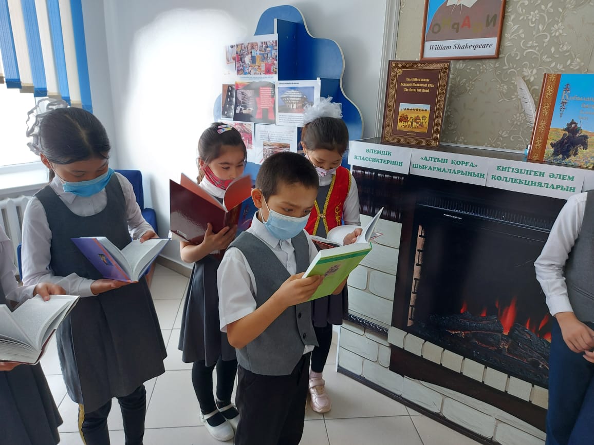 Т.Жармағамбетов  атындағы орта мектебінің 4сынып оқушыларына  Әлемдік 《Алтын қорға》енгізілген әлем классиктерінің шығармаларының коллекцияларын ұйымдастыру  аясында көрме .